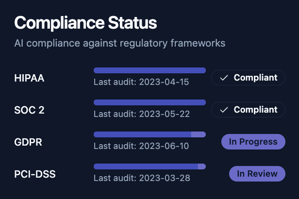 Beam9 ensures your AI aligns with standards like HIPAA, SOC 2, GDPR, and more—right from the start.